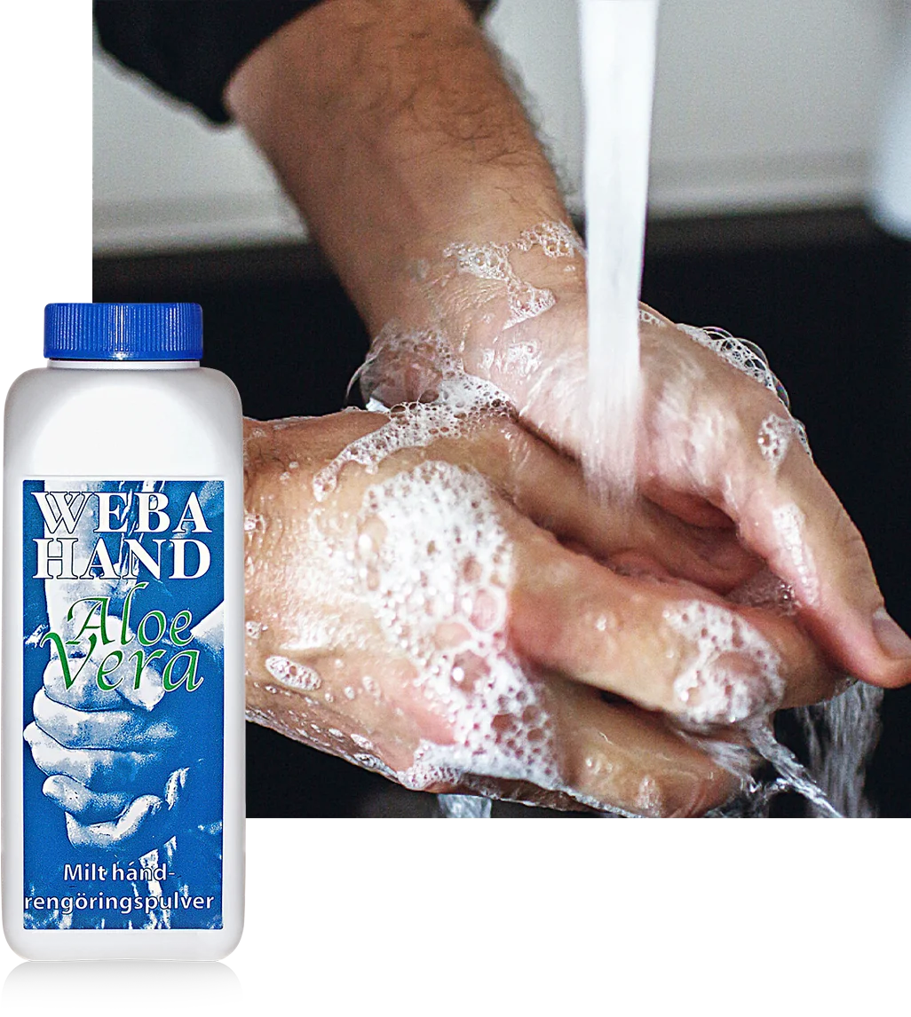 WEBAHAND är mycket populär av personer vars händer tar stryk av arbete och ständig handtvättning. WEBAHAND sätter inte igen avloppen då den är fullständigt löslig. WEBAHAND handrengöring kan med fördel användas i ett fotbad för trötta och torra fötter.